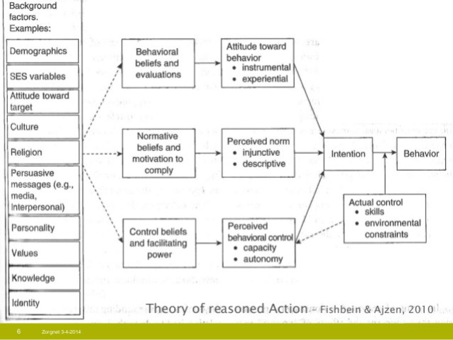 Teori tersebut adalah Theory of Reasoned Action (selanjutnya TRA) yang dikemukanan oleh Icek Ajzen dan Martin Fishbein (2010). Teori memiliki pendekatannya yang komprehensif dalam memahami perubahan perilaku sehingga dapat memberi gambaran yang jelas tentang data apa saja yang mungkin diperlukan bila kita ingin membangun program untuk mengubah sikap dan perilaku suatu kelompok masyarakat.